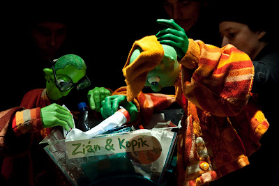 Az est második felében elemeztük az előadásokat. A beszélgetés során – a témát figyelembe véve – képzőművészeti szempontból is tárgyaltuk az aznap látott előadásokat. Egy adott ponton, akarva-akaratlanul szó esett a Cimborák Bábszínház előadásaiban használt bábokról. Pontosabban 2 rég nem látott, „eltévedt”, kámforrá vált vagy talán elrabolt figuráról (remélem nem!). Minden mese jól végződik, ezért szeretnénk, hogy a mi mesénknek is jó legyem a vége. De ehhez...meg kell találni őket!