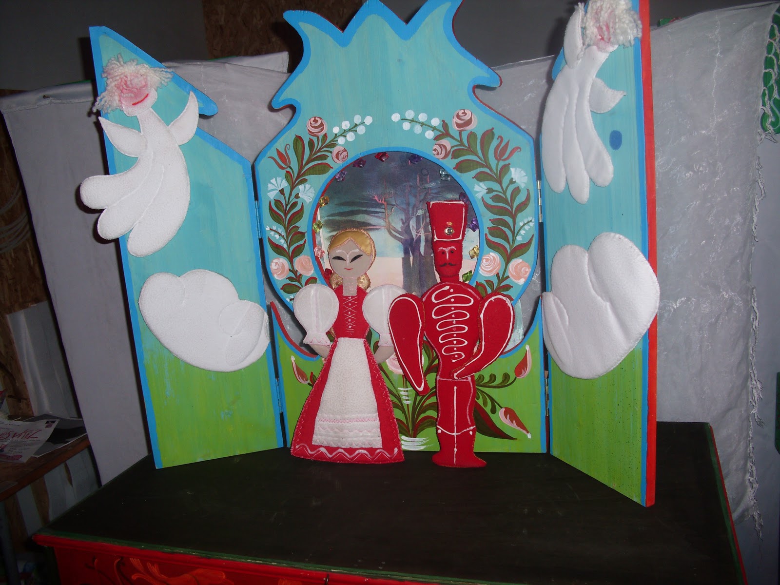 Az egyszerű népi bölcsességek világához kitűnően igazodik és kiegészíti azt Simó Enikő vidám-vásári hangulatot árasztó bábserege.